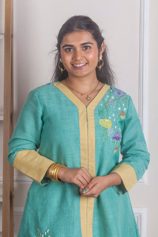 Indigo & Mustard Hand Embroidered Co-ord Set